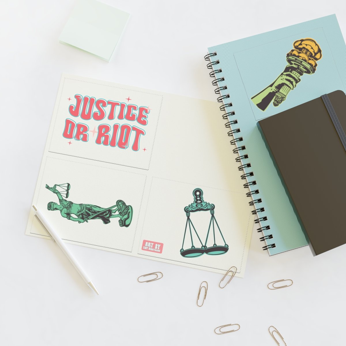 Justice Or Riot Sticker Sheets - Fun Justice-Themed Decals for Empowerment, Activism, Gifts, and Jou