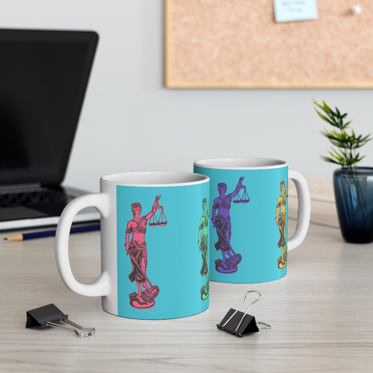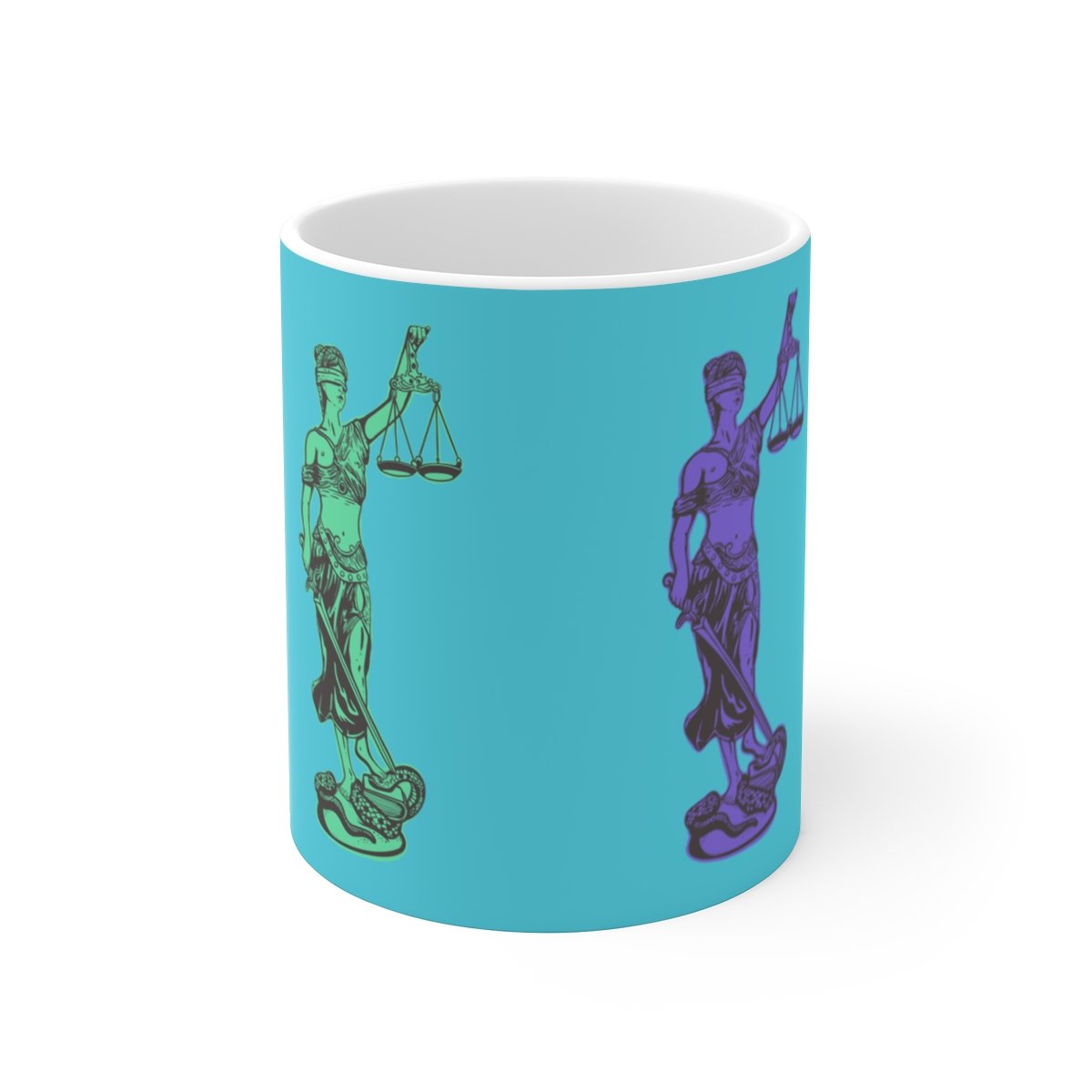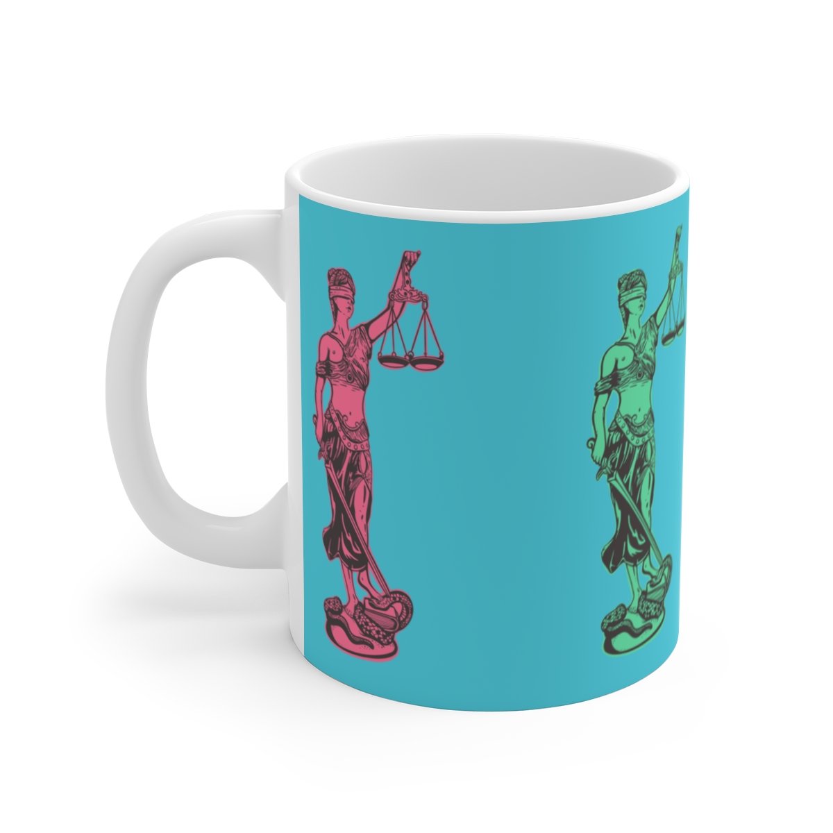 Perfect for coffee, tea and justice. Lady justice reminds you everyday where the scales balance.